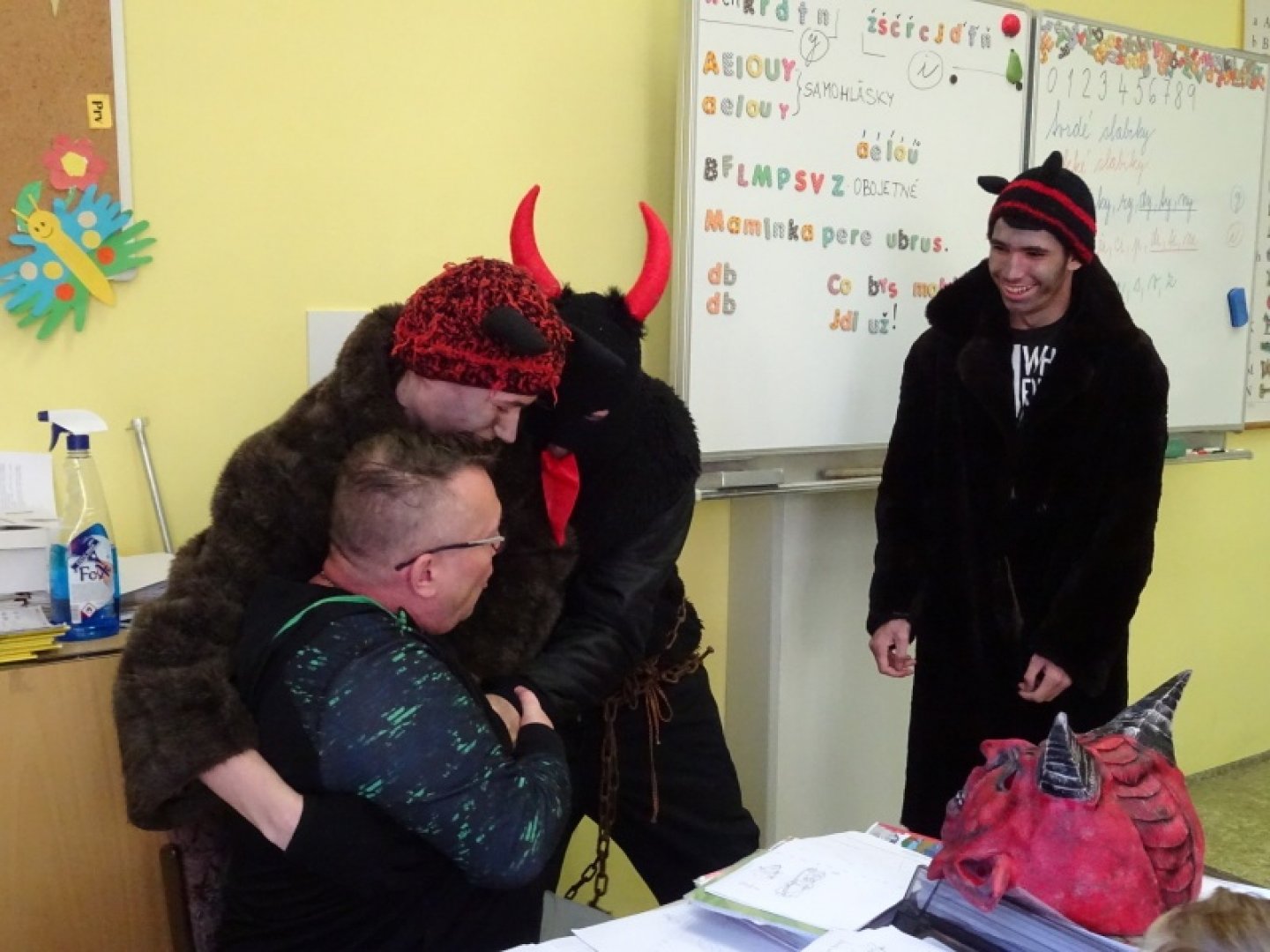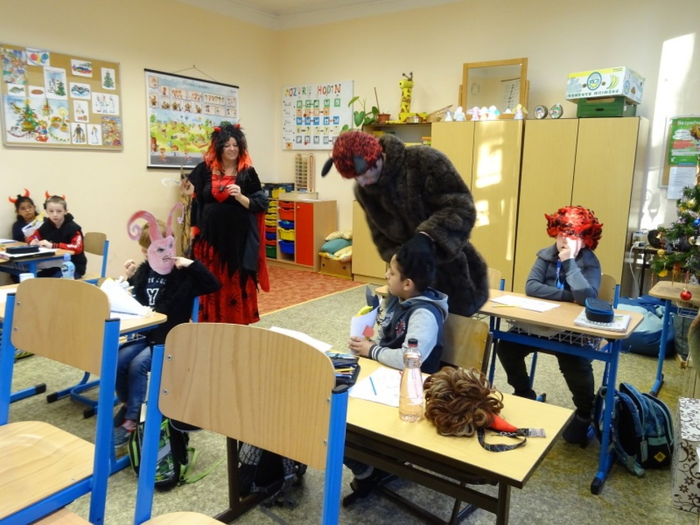 Už od rána žáci prvního stupně, převlečeni do kostýmů čertíků a andělů, netrpělivě vyhlíželi své učitele. Nemohli se totiž dočkat vyučování plného čertovin.