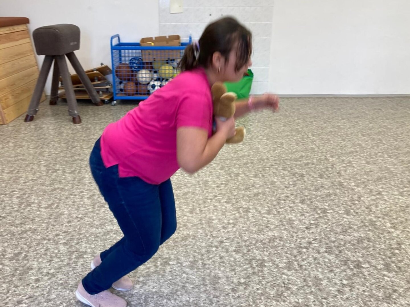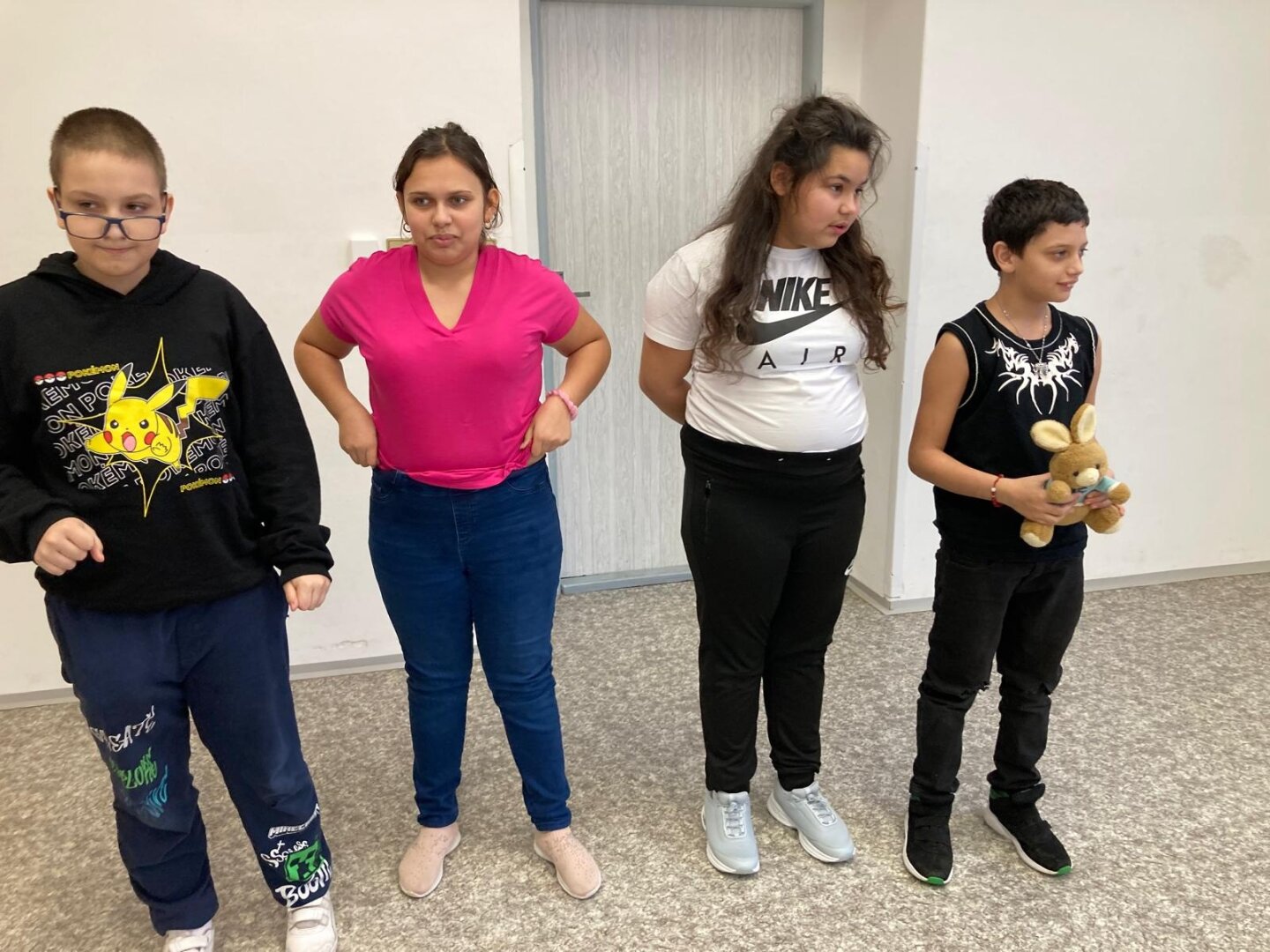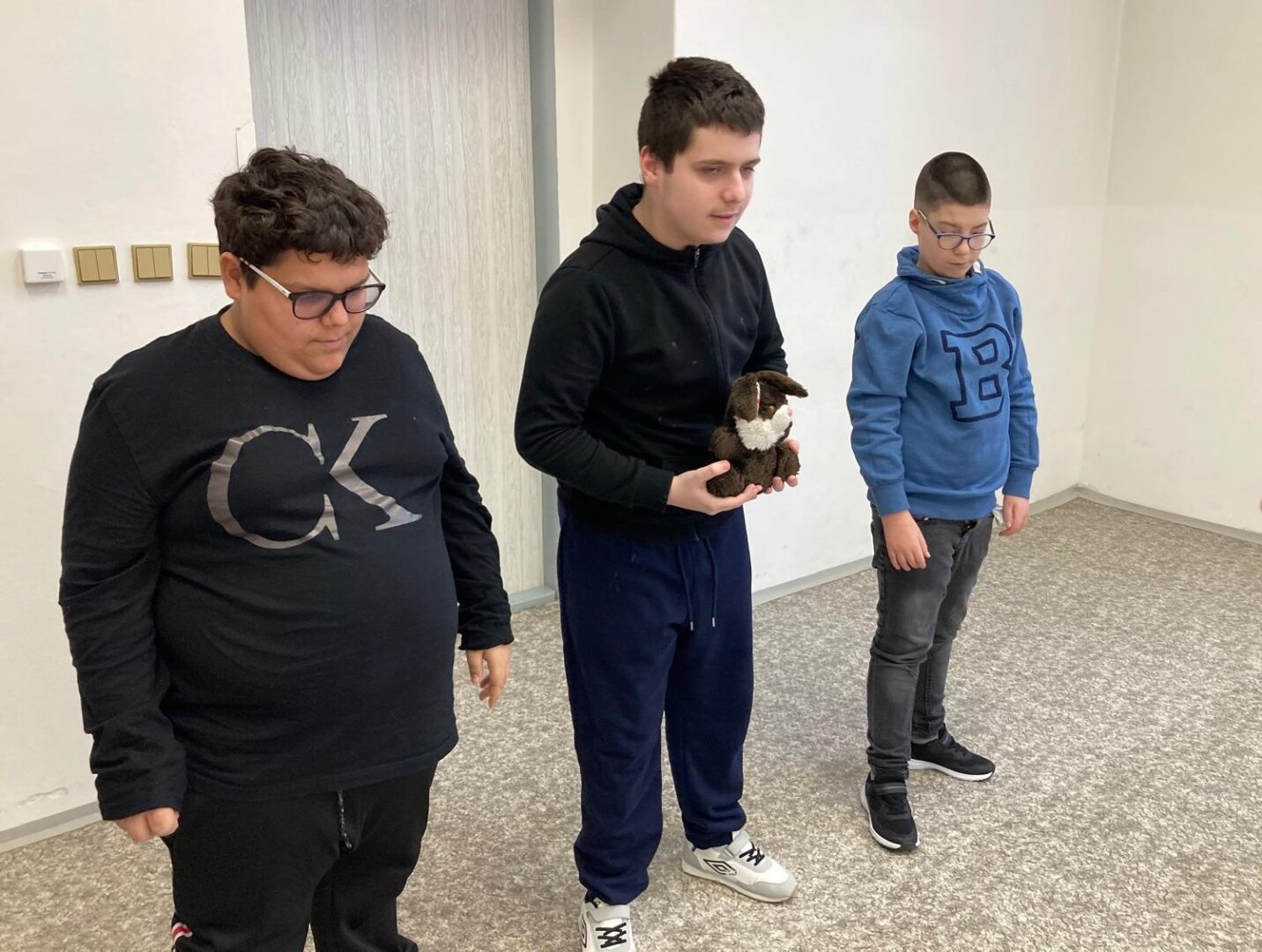 Co je pro tento vzdálený kontinent nejtypičtější? Klokani. A co dělají klokani? Skáčou... Děti se nejprve při hře na molekuly rozdělily do trojic. Každá trojice žáků si vybrala svého malého klokana, kterého si předávali místo štafetového kolíku. A pak už mohli začít poměřovat své síly. Každý ze skupinky skočil 5 skoků a vyhrála skupina, která takto doskákala nejdále.