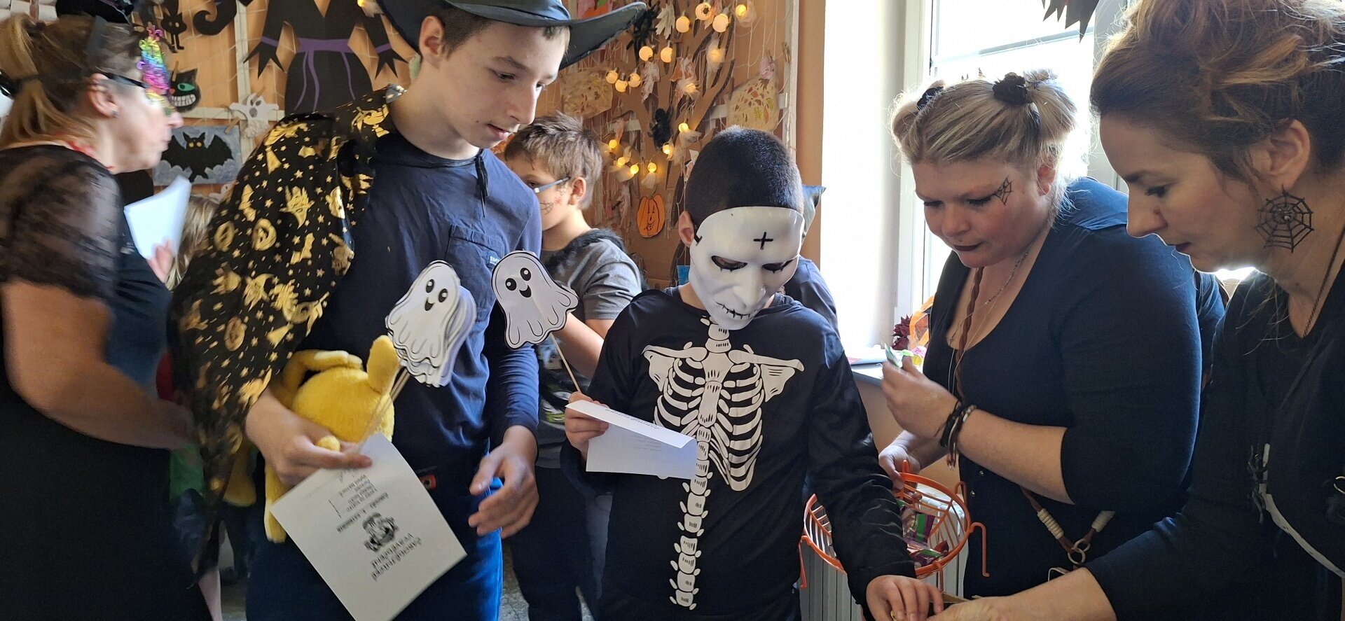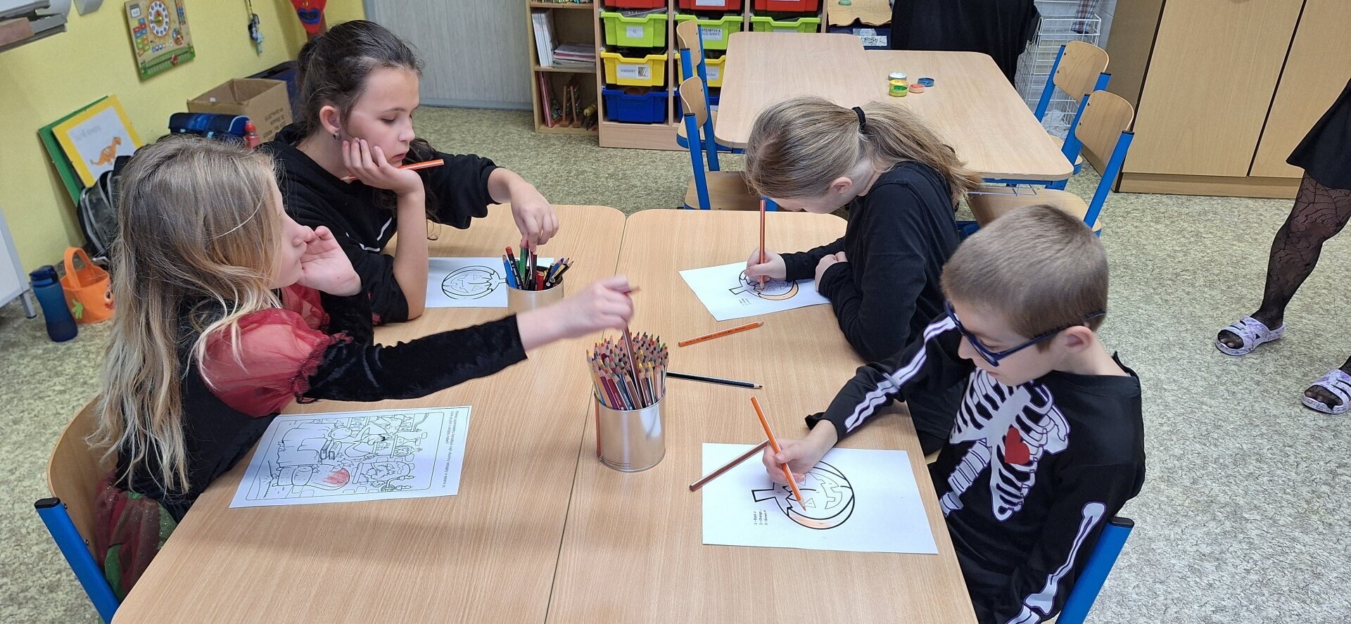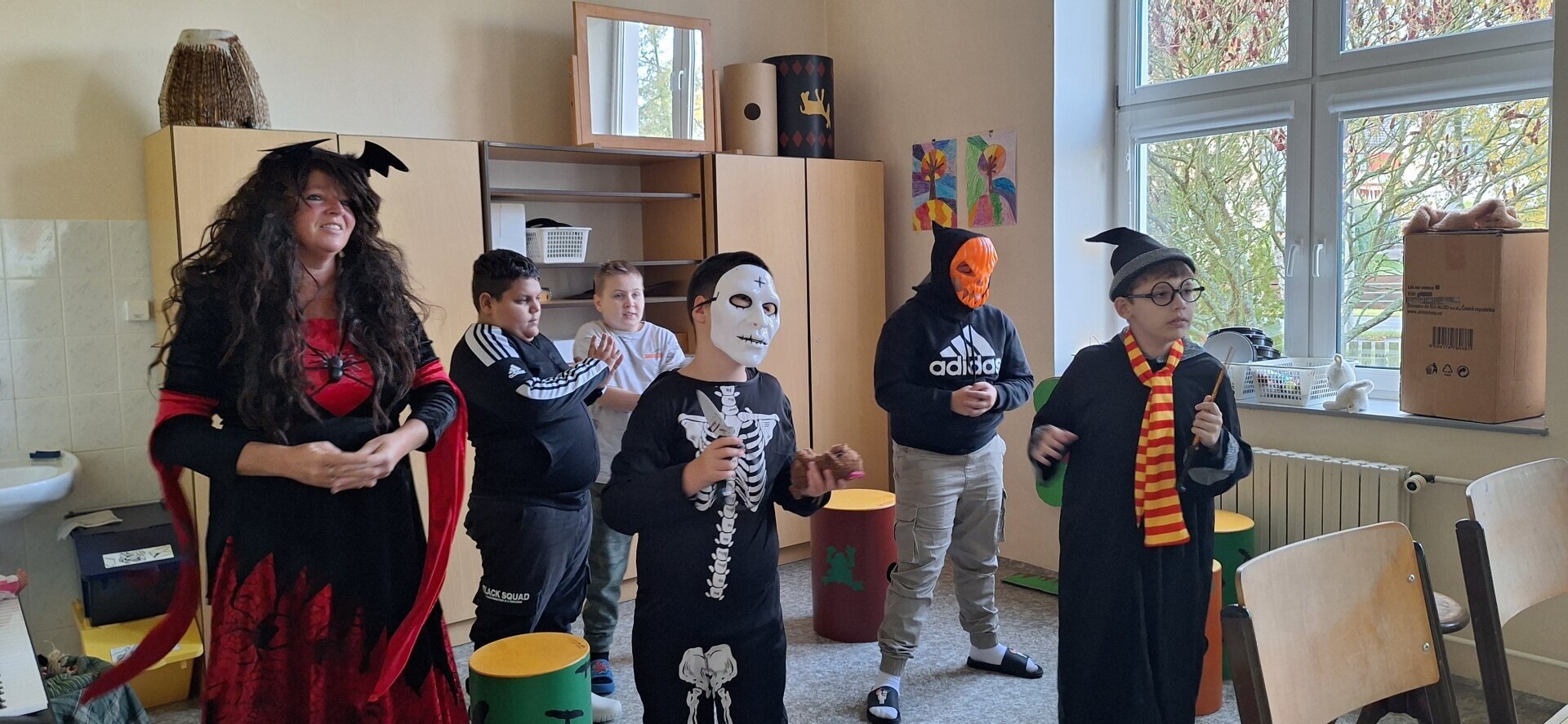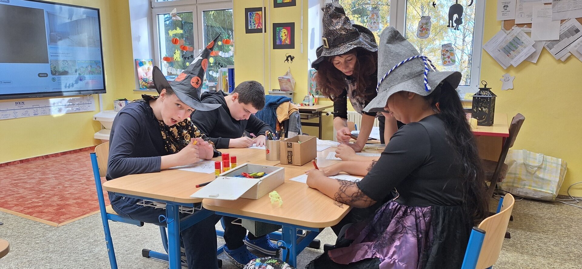 Žáky I. stupně čekal pestrý program, při kterém se naučili čarodějnický tanec a halloweenskou písničku, let na koštěti, vaření lektvarů a na závěr si vyrobili jednoduchou dekoraci v podobě ducha.