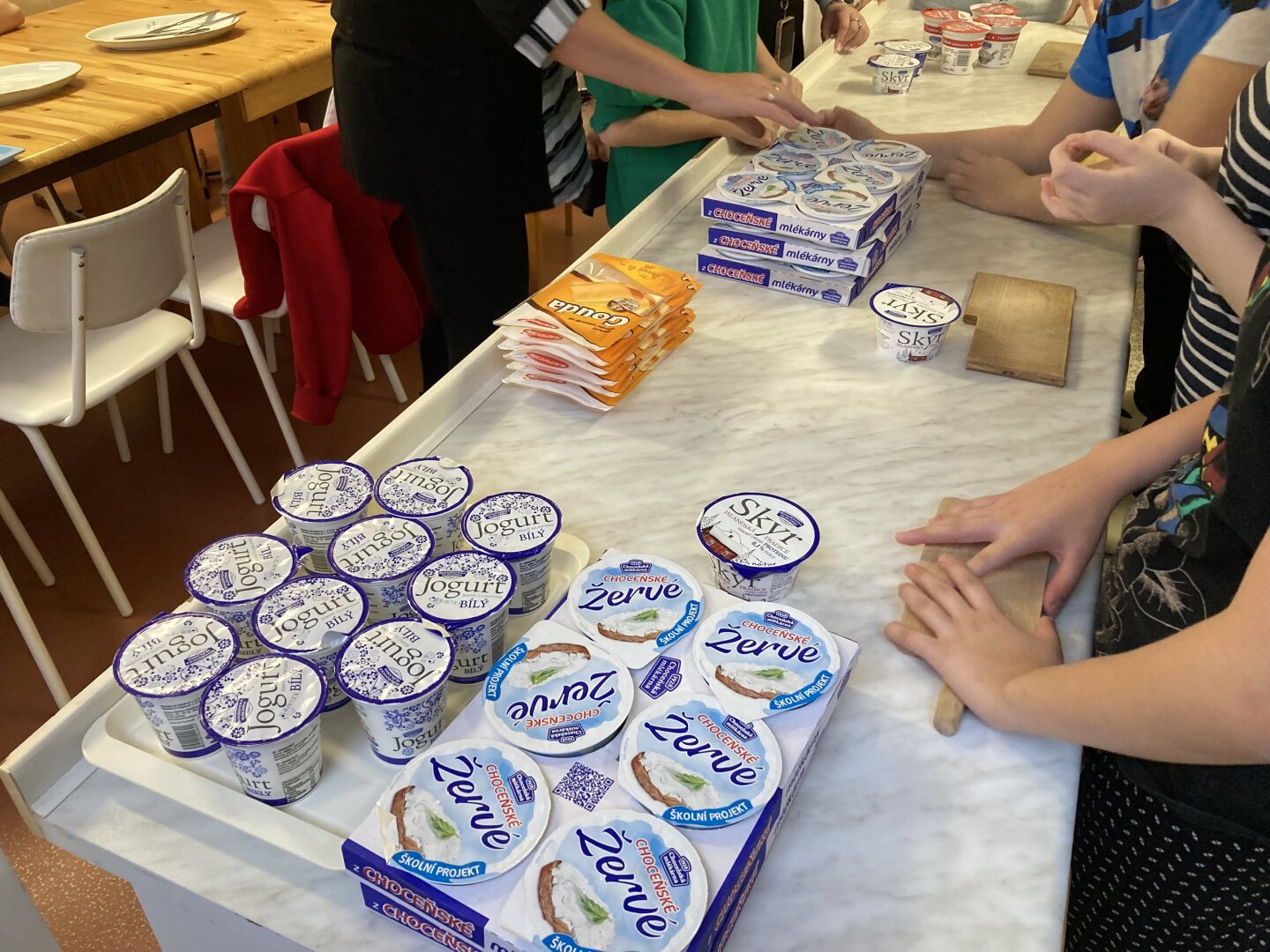 Základem celého dopoledne se staly kvalitní mléčné výrobky, které škola v rámci projektu dostává. Žáci se s nadšením pustili do práce a pod jejich rukama začaly vznikat chutné pomazánky – například česneková, budapešťská či bylinková. Děti experimentovaly s tvarohem, sýry i bylinkami a zjistily, že připravit si vlastní zdravou svačinu je mnohem větší zábava, než se na první pohled zdá.