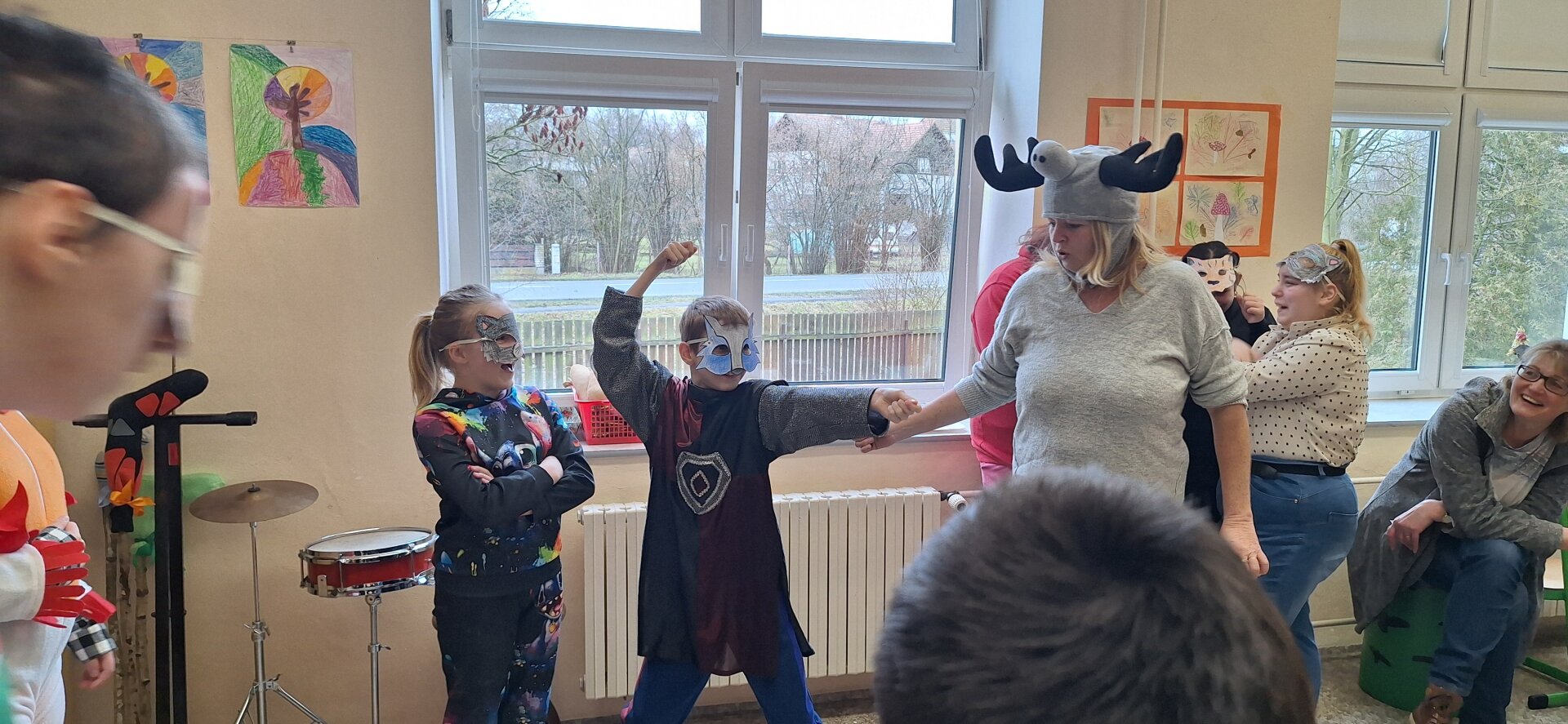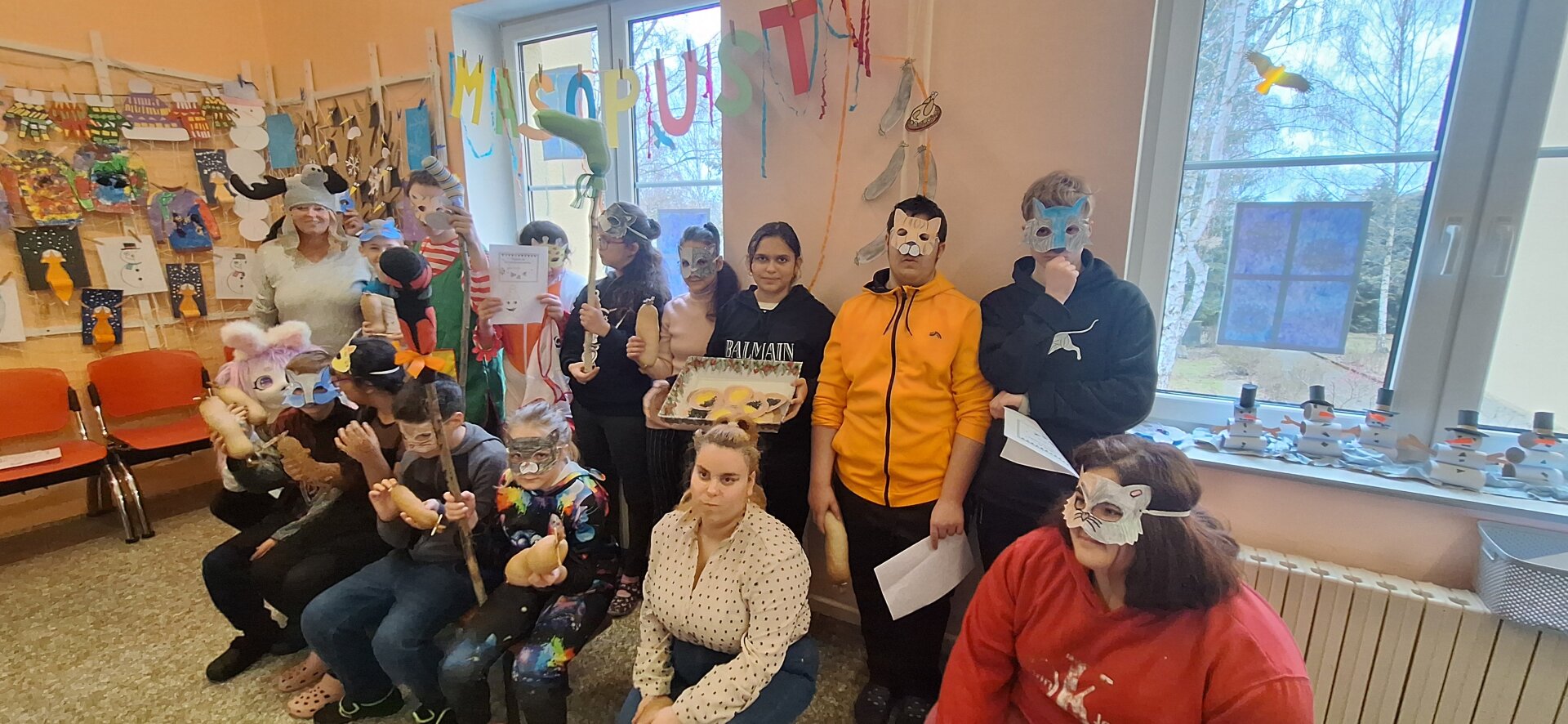 V úterý 13. února se chodby naší školy proměnily v jedno velké masopustní rejdiště. Učebnice a sešity tentokrát musely ustoupit papírovým maskám a rytmickým úderům vozembouchu. Do oslav se s nadšením zapojila celá škola a na žáky čekala tři tematická stanoviště.