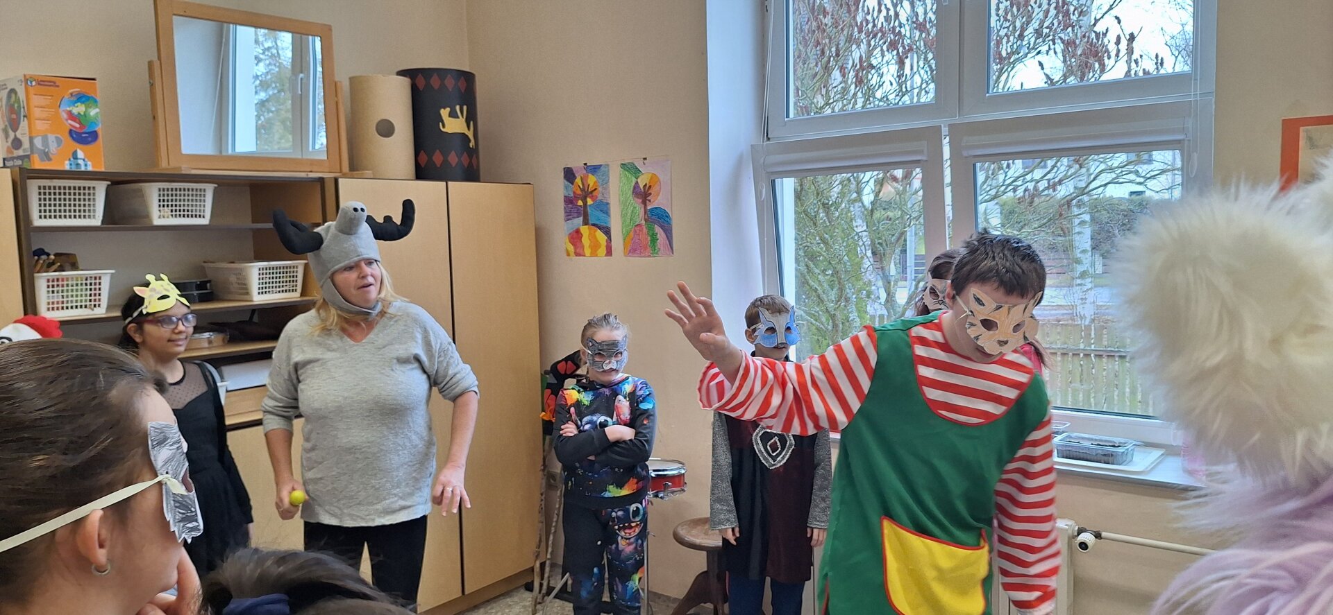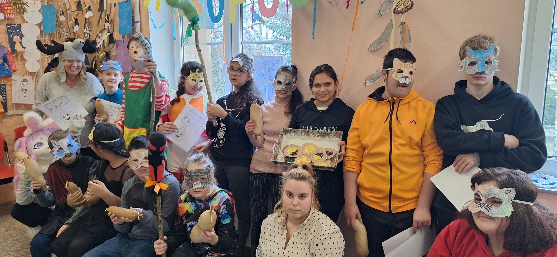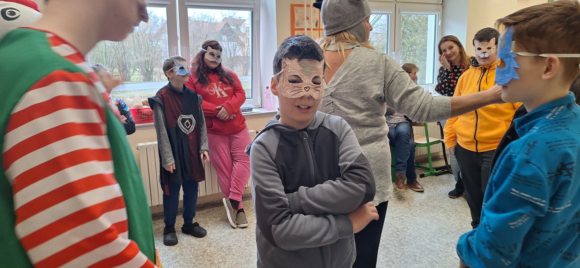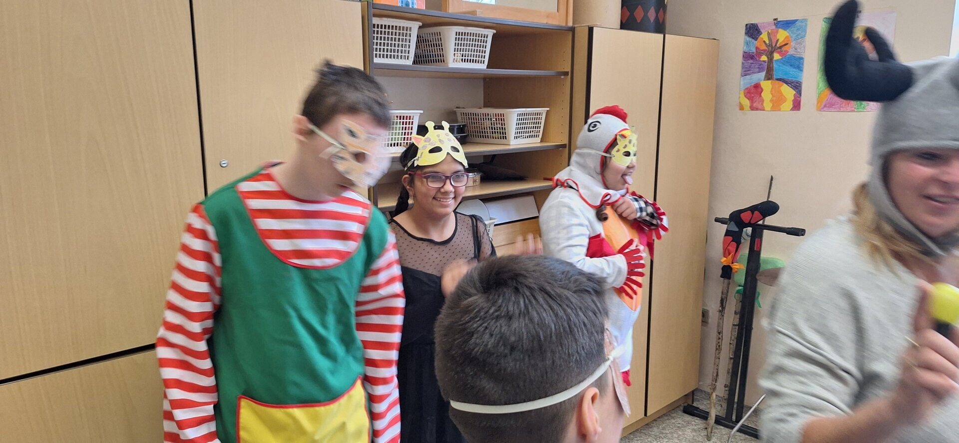 V úterý 13. února se chodby naší školy proměnily v jedno velké masopustní rejdiště. Učebnice a sešity tentokrát musely ustoupit papírovým maskám a rytmickým úderům vozembouchu. Do oslav se s nadšením zapojila celá škola a na žáky čekala tři tematická stanoviště.