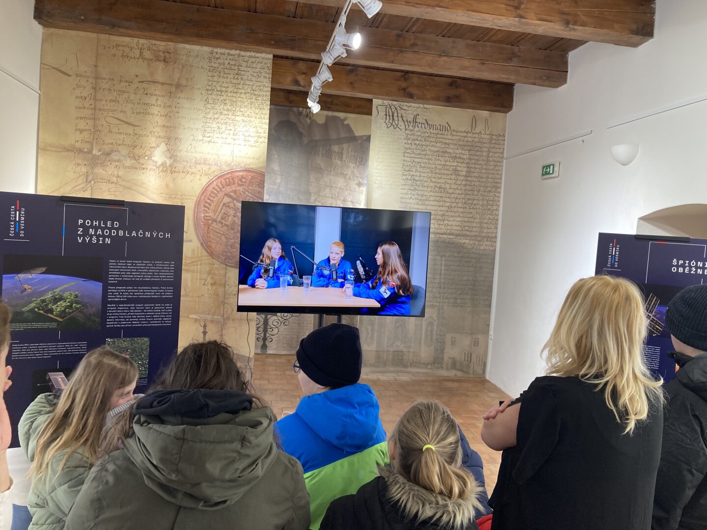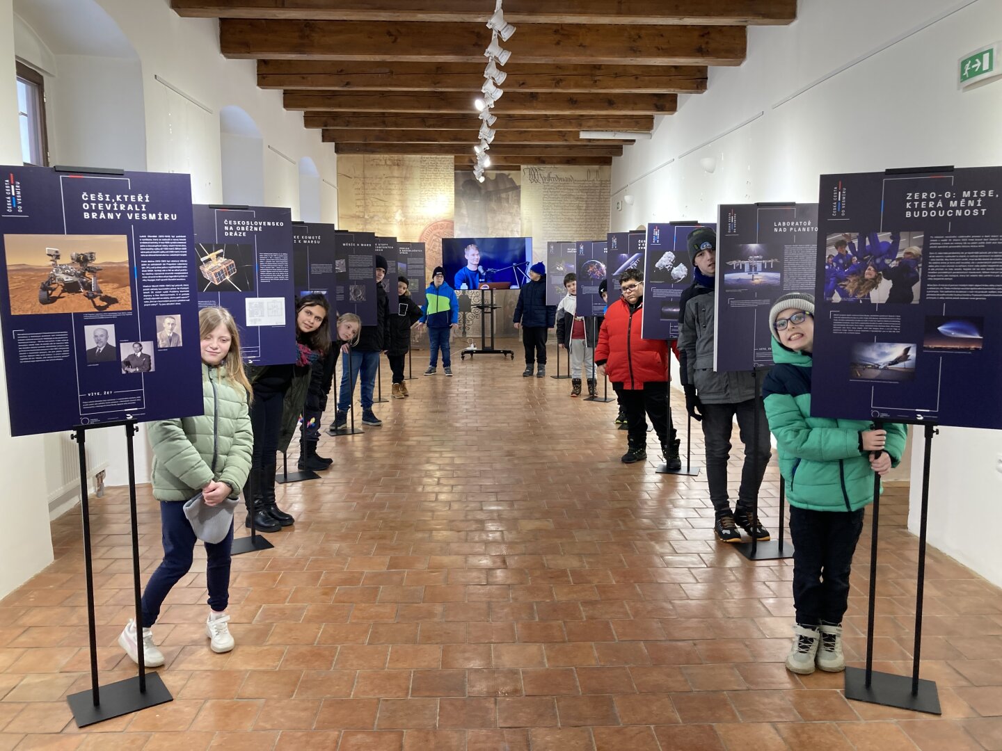 Při té příležitosti jsme měli možnost zhlédnout informační panely s fotografiemi z projektu „Česká cesta do vesmíru“. Ty dětem srozumitelnou formou představily nejen naše dosavadní úspěchy v kosmonautice, ale i plány na budoucí mise, kterých se mohou čeští vědci a astronauti účastnit. Pro žáky bylo fascinující vidět autentické snímky z výcviku i modely technologií, které se ve vesmíru skutečně používají.