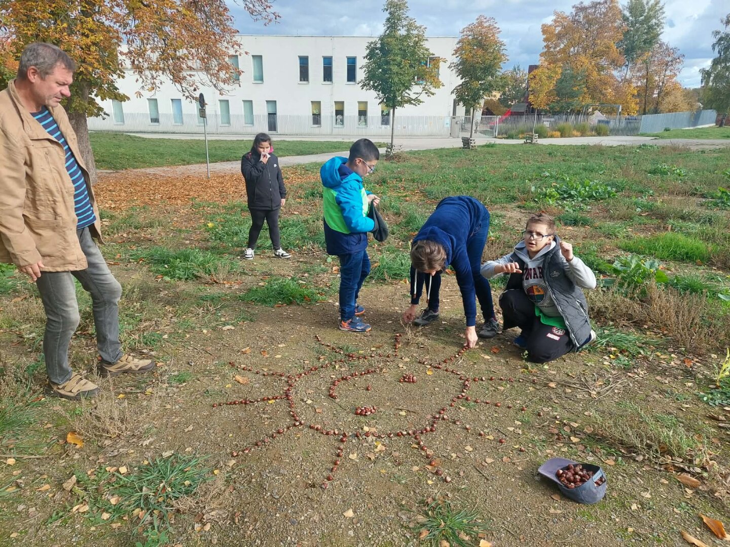 V rámci hodin tvoříme hlavně z přírodního materiálu a podzim byl pro to přímo stvořený. Chodíme do přírody, při práci si povídáme a vyprávíme příběhy.