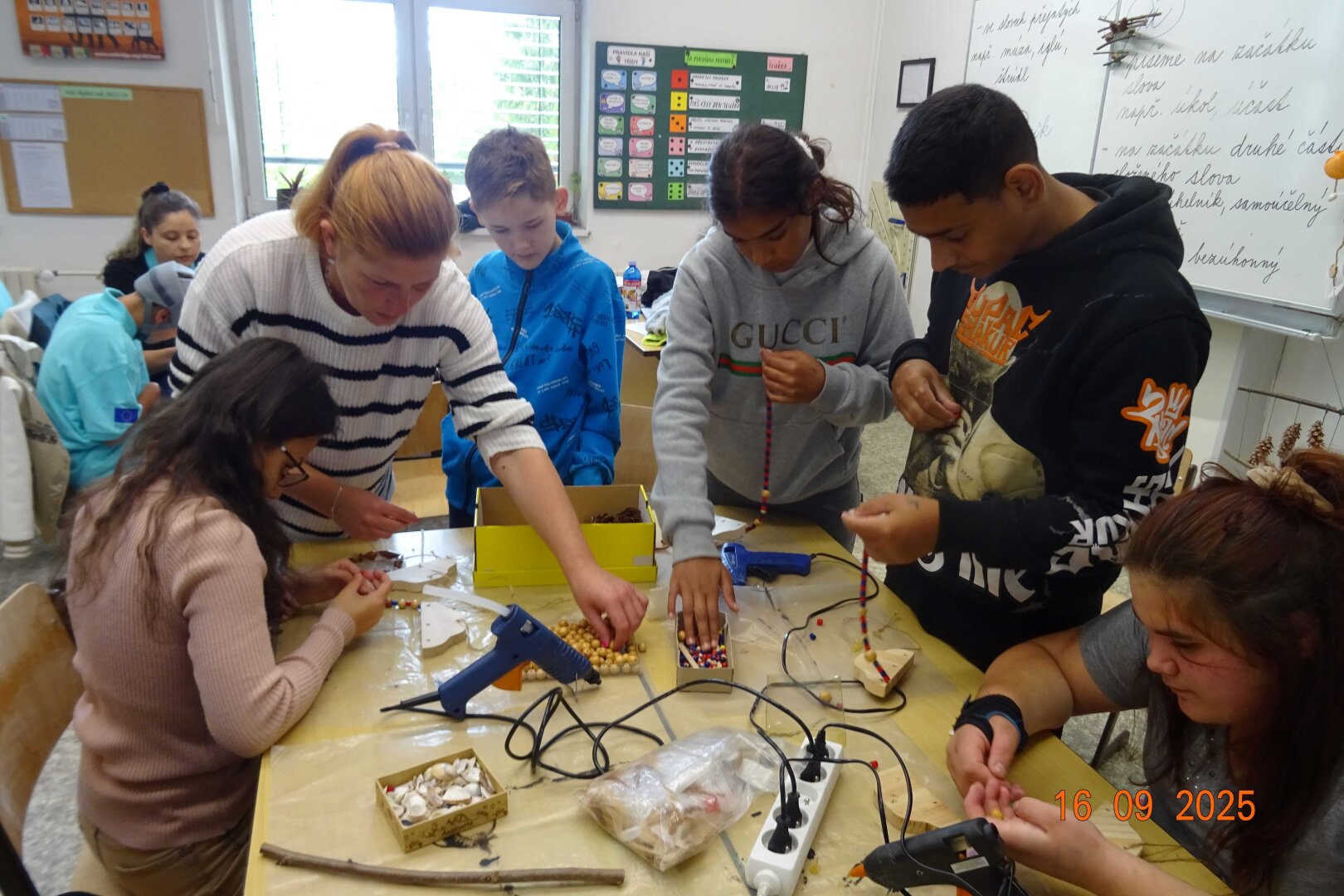 První den proběhl v naší škole. Návštěvníci si prohlédli naši školu, v učebnách je například zaujaly interaktivní tabule. V rámci společného workshopu si společně s našimi žáky z 2. stupně vyrobili ptáčky a ozdobné závěsy z přírodního materiálu. Ty jsme následně pověsili na stromy v naší školní zahradě.