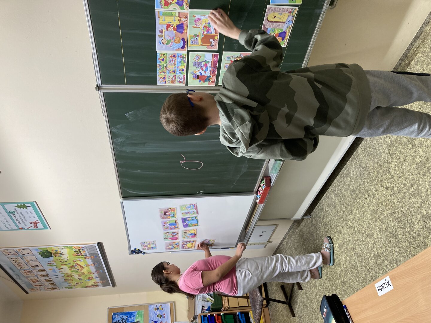 Vrcholem ukázkové hodiny byla hra „Pojďme programovat“. V dnešní digitální době je logické myšlení klíčové a tato hra ho rozvíjí tou nejzábavnější formou. Bez nutnosti sedět u počítače se žáci učili vytvářet sekvence příkazů, řešit logické úkoly a hledat nejefektivnější cesty k cíli. Základy programování se tak pro ně staly srozumitelnou hrou, nikoliv složitou vědou.