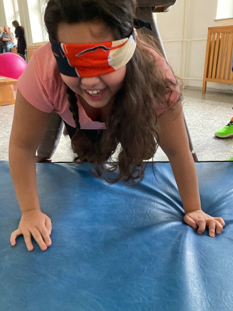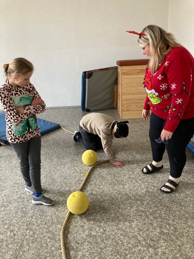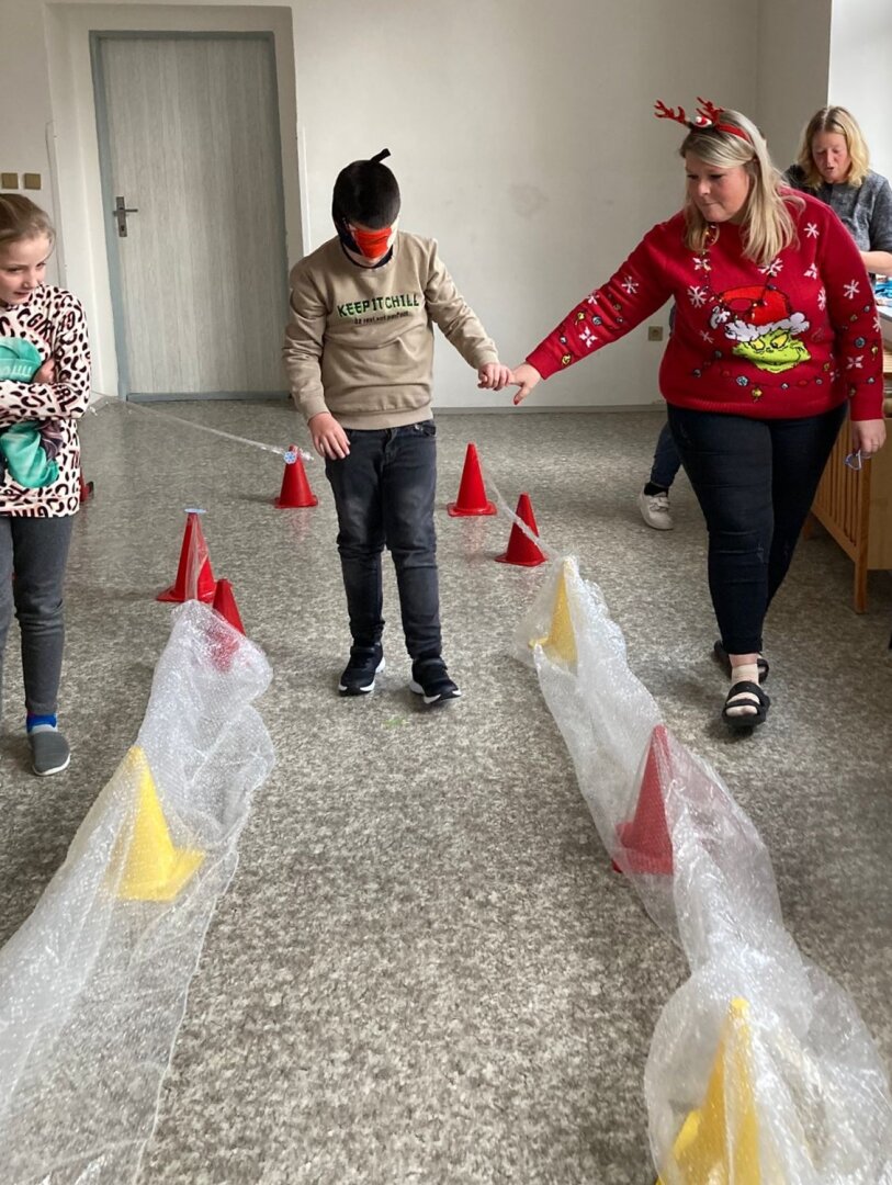 Děti se na začátku rozdělily do dvojic, jeden si zavázal oči a druhý se stal navigátorem, který mu pomáhal celou trasu projít.