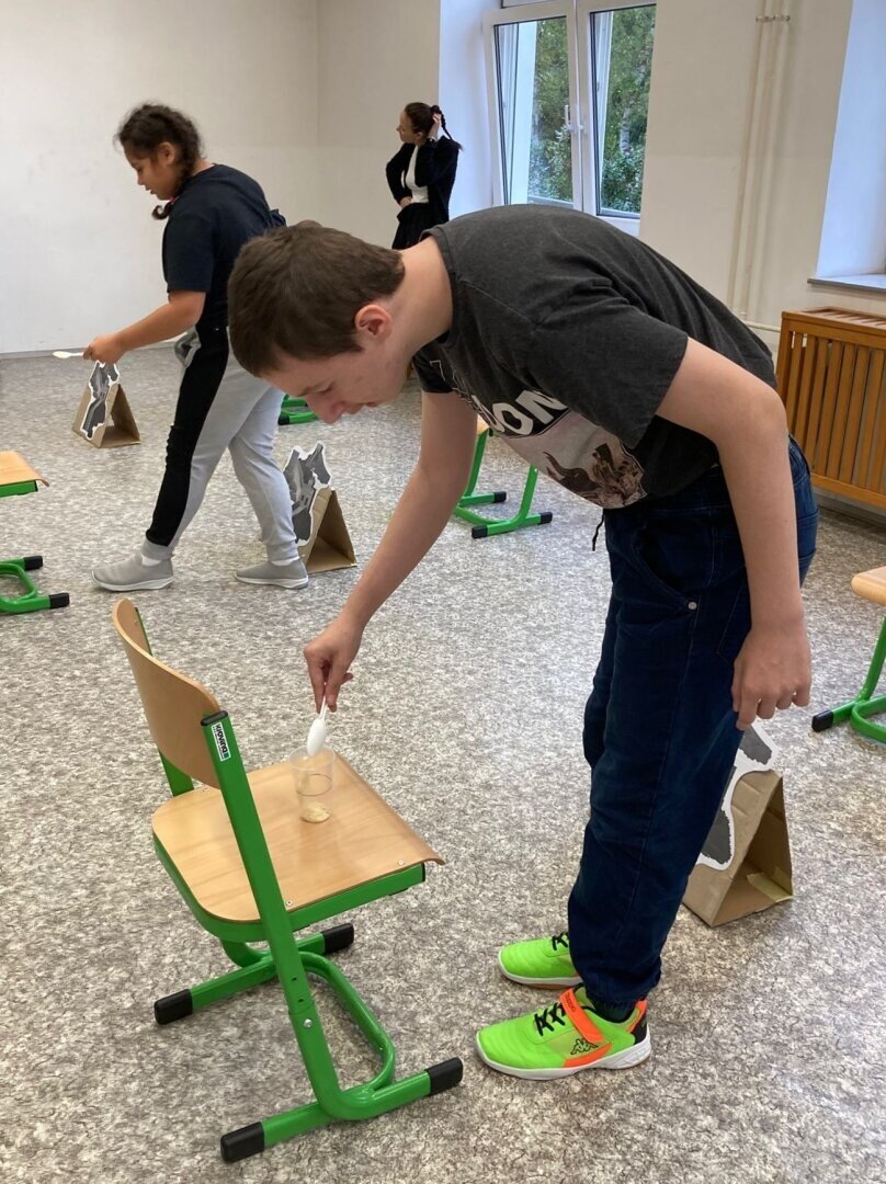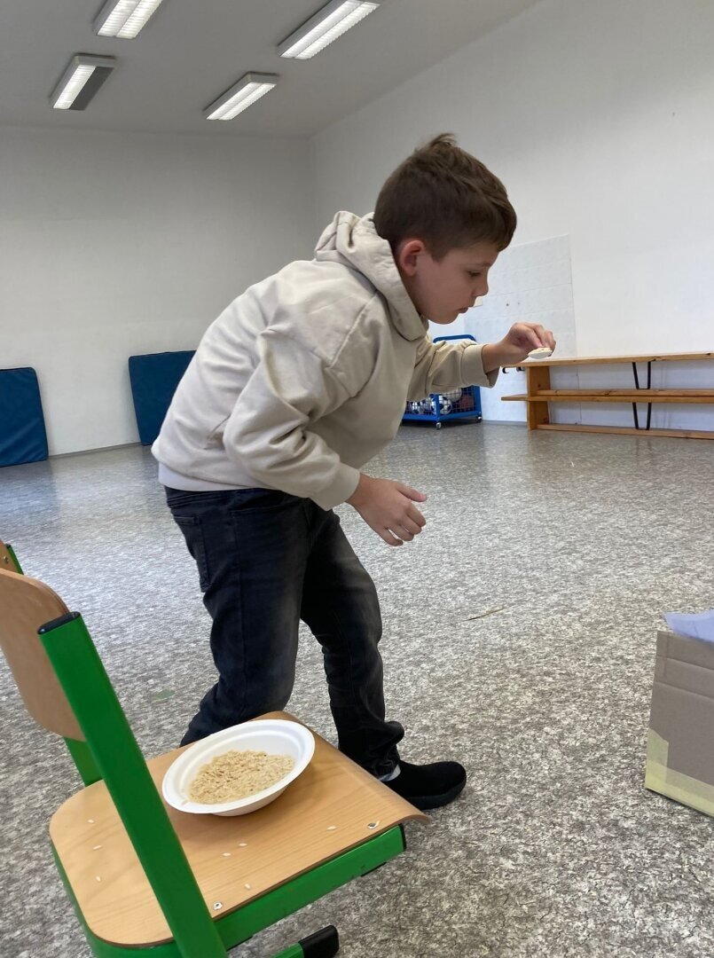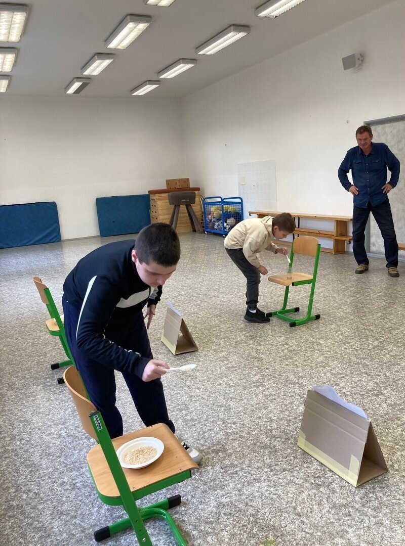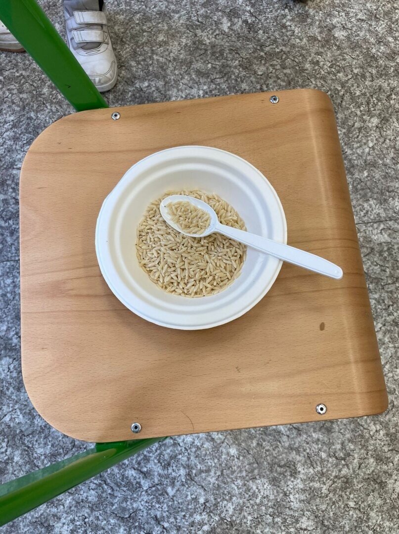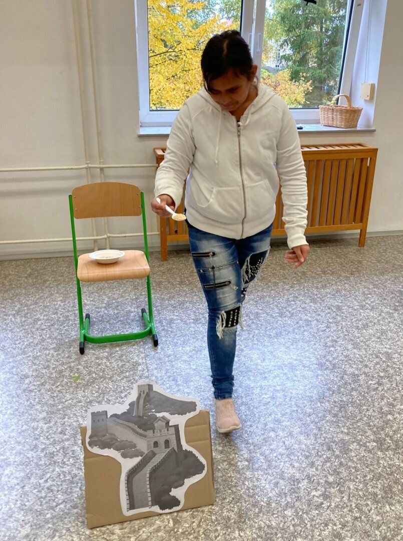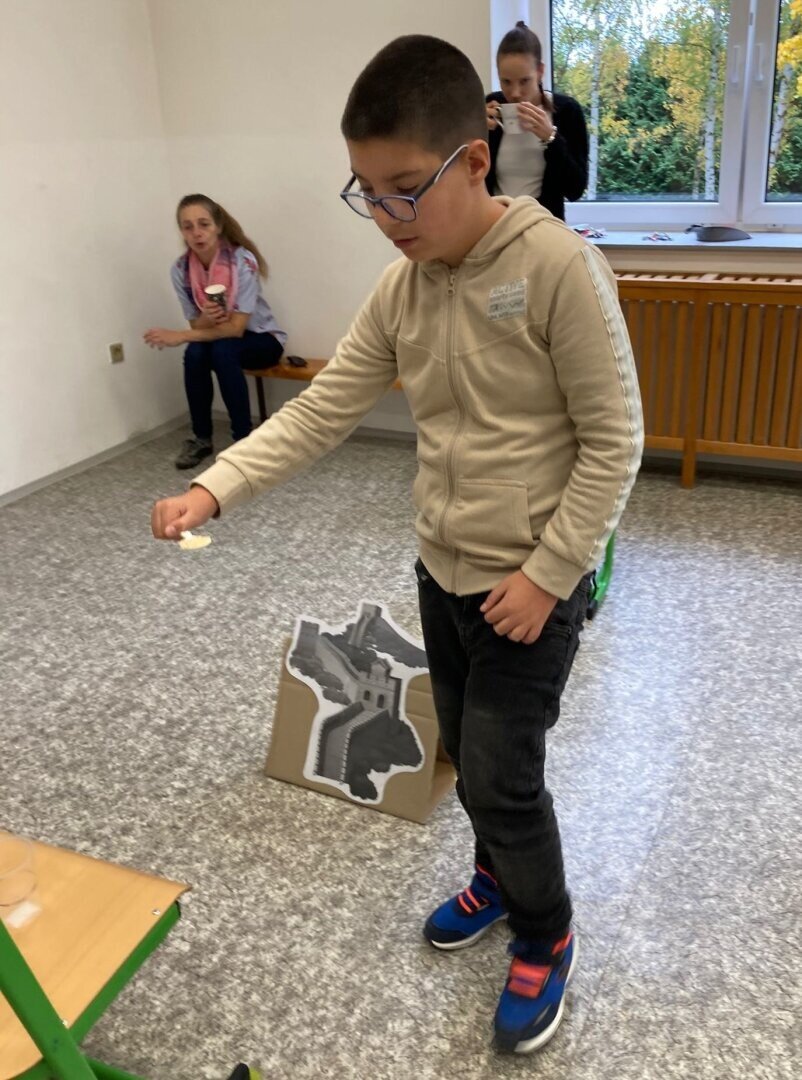 Tématem letošního školního roku je cesta kolem světa a toto kolo nás zavedlo do daleké Asie. Navštívili jsme Čínu a žáci při soutěžení přenášeli na čas rýži kolem Velké čínské zdi. A protože s hůlkami to nedokázaly ani paní učitelky, mohly děti použít naše evropské lžíce. Všichni se moc snažili a síly byly vyrovnané.