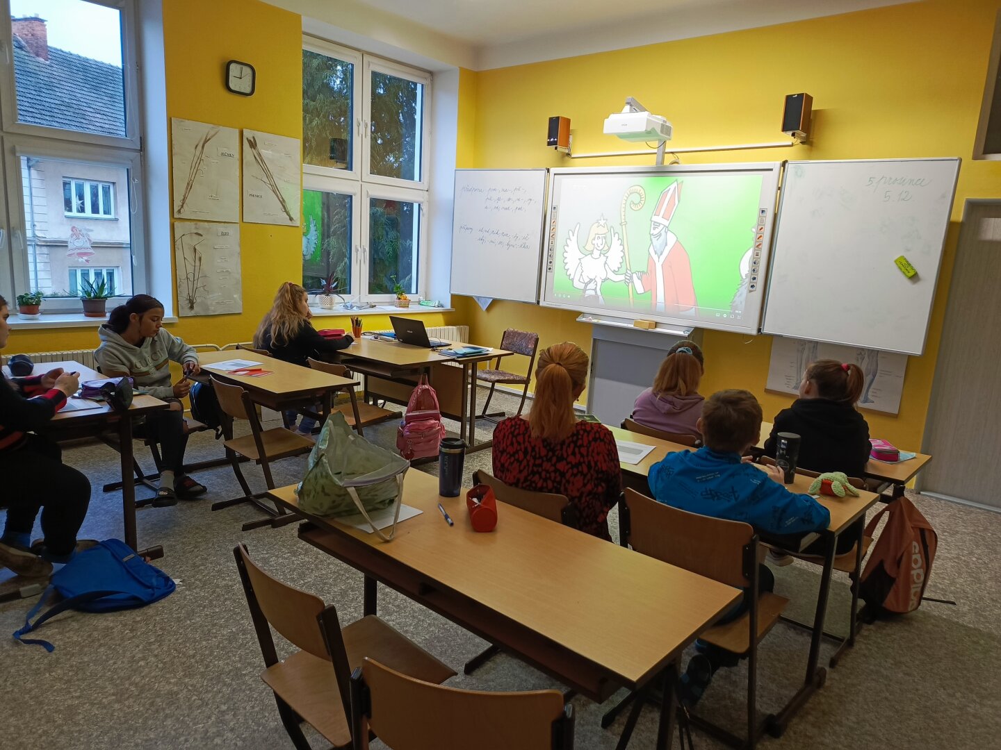 Na druhém stupni probíhala dne 5. 12. tematická výuka věnovaná svátku svatého Mikuláše. Žáci pracovali s pracovním listem „Legenda o svatém Mikulášovi“, jehož cílem bylo ověřit znalosti z výukových videí České televize a navázat na námět „Mikuláš v minulosti a dnes“.