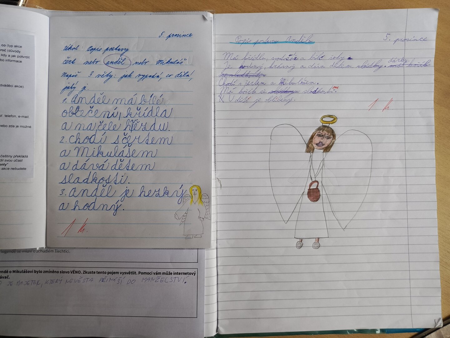 Děti si připomněly tradice, zvyky i historické souvislosti spojené s tímto svátkem a následně samostatně psaly charakteristiku jedné vybrané postavy z mikulášské trojice – čerta, anděla nebo Mikuláše. Každý si zvolil postavu podle svého výběru a pokusil se vystihnout její vzhled, povahu i roli v tradiční nadílce.
