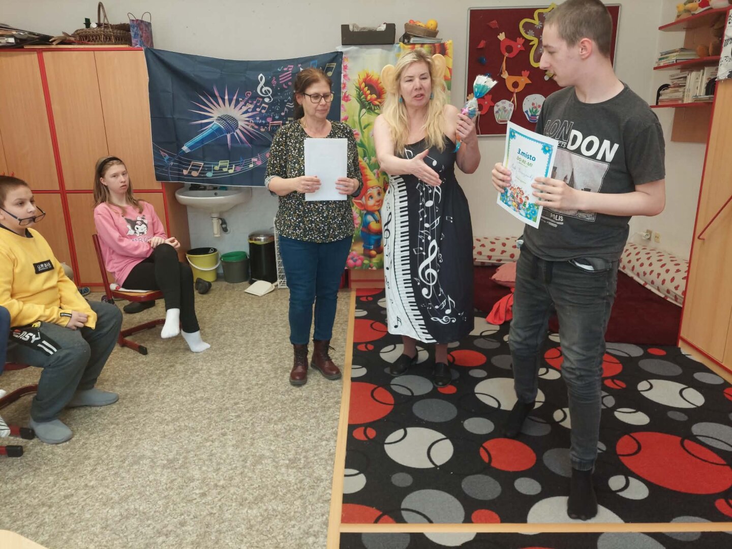 Ve čtvrtek 19.3. se prostor školní družiny zaplnil malými zpěváky, kteří při soutěži Doremi předvedli své pěvecké umění a zazpívali oblíbené písně. Všichni soutěžili s vervou i nadšením a každý výkon byl doprovázen velkým potleskem. Porota měla těžkou práci rozhodnout o vítězi. Během sčítání bodů předvedla Nina Radová taneční vystoupení na hit Sigma Boy. Hudební odpoledne nám příjemně uteklo a děti si užily sladké odměny od paní Koprnové.