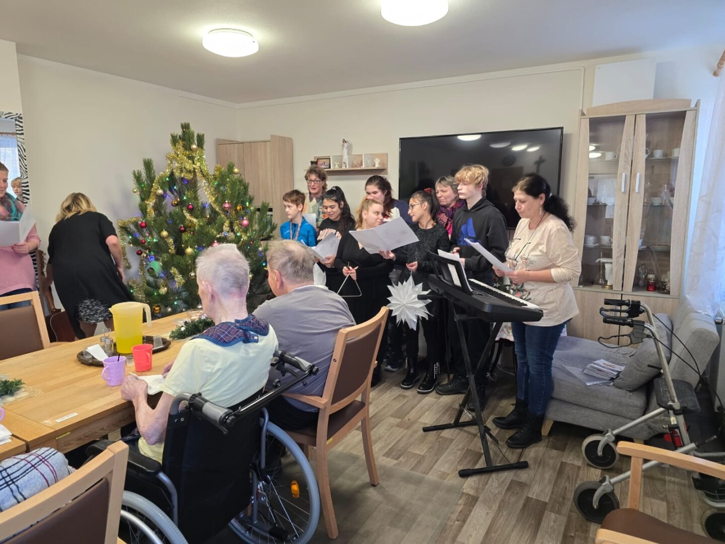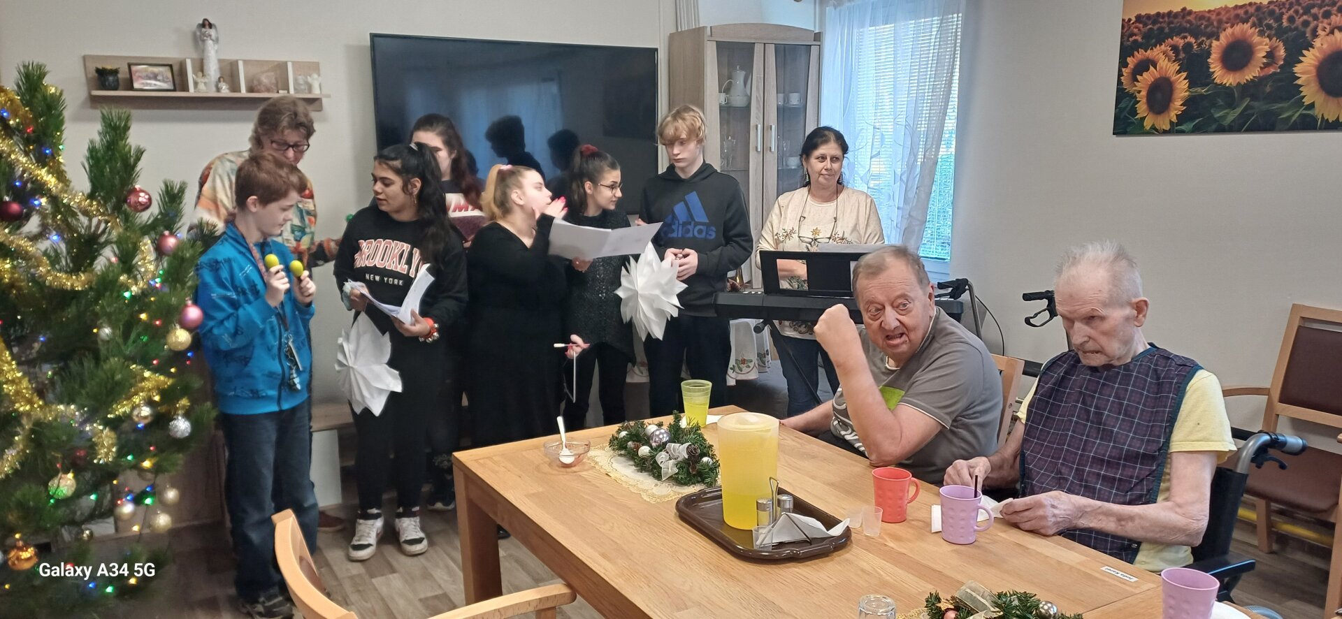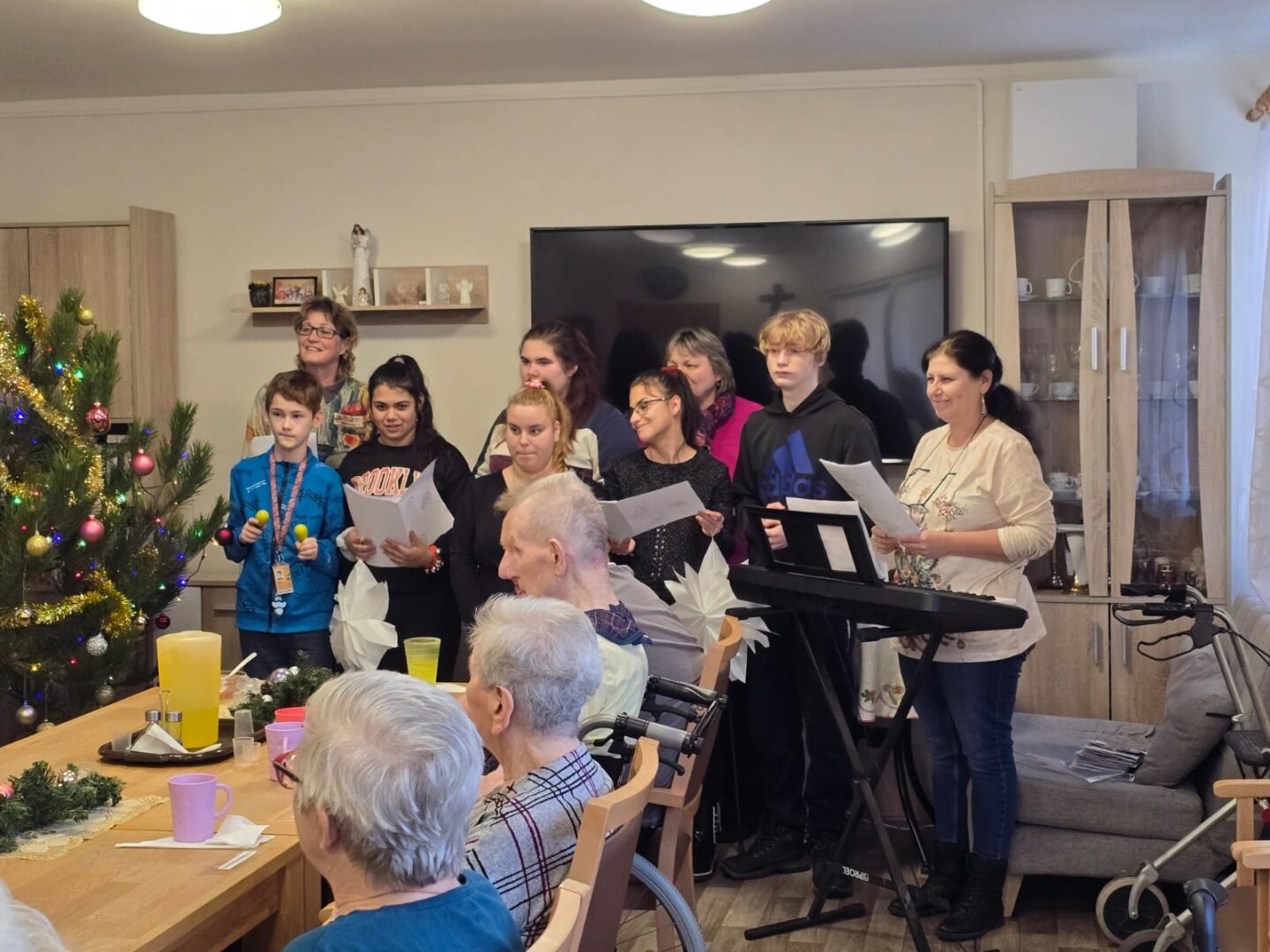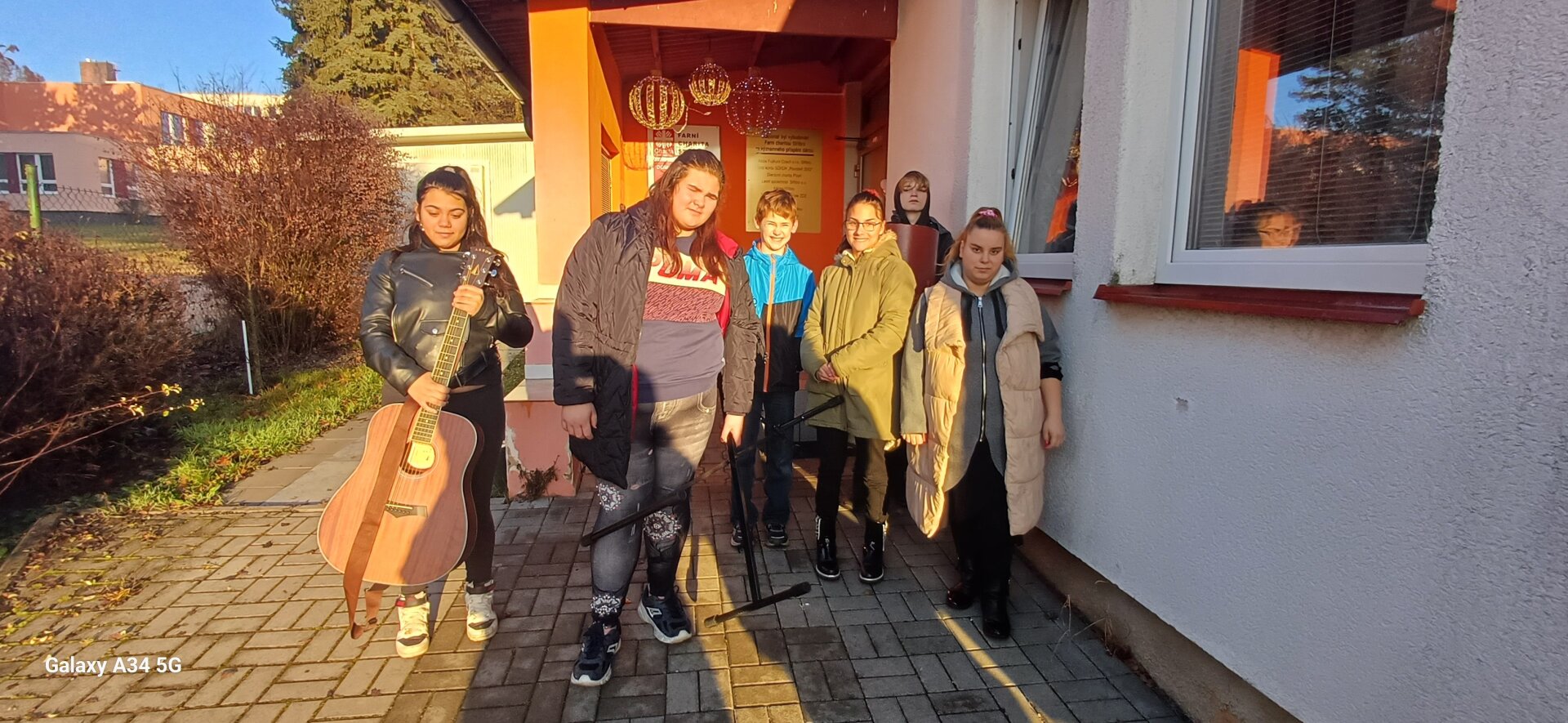 Naši žáci z druhého stupně si připravili pásmo zimních písní a vánočních koled, které nám zazpívali u rozsvícení stromečku. A protože je vánoční čas, rozhodli se udělat radost i ostatním, šli zazpívat do Charity a mateřských školek. Všem se zpívání moc líbilo a žáci měli hřejivý pocit na srdíčku, že vykouzlili úsměv na tváři mnoha lidem.